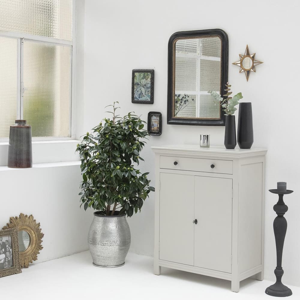 Das Sideboard Léandre im Pariser Stil aus Seekiefer und Buchenholz wird hier elegant neu interpretiert und schmückt Ihren Eingangsbereich oder Ihr Wohnzimmer.Die matte hellgraue Farbe dieses Sideboards, das wenig Platz einnimmt und ideal für kleine Wohnungen ist, macht es zu einem Möbelstück, das nicht gleichgültig lässt. Hinter seinen zwei verschließbaren Türen befindet sich ein Regal und darüber eine große Schublade über die gesamte Länge, die auch praktisch für Küchenutensilien ist. Er ist ebenfalls in 3 Farben erhältlich und lässt sich mit den anderen Produkten der Kollektion kombinieren. Das Produkt wird montiert geliefert. Entdecken Sie die gesamte Kollektion von Léandre
