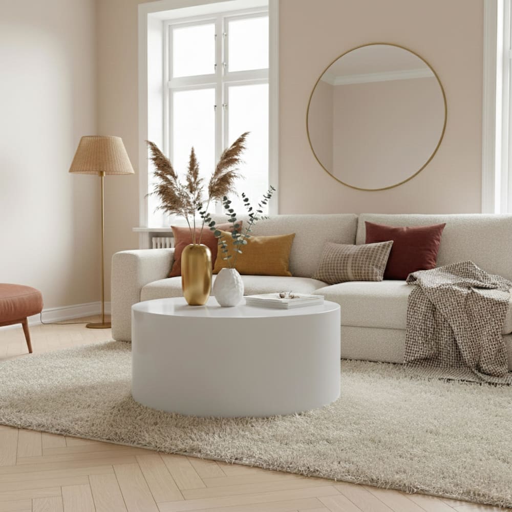 Dieser runde Couchtisch in Holzoptik mit den Maßen Ø80×40 cm verleiht Ihrem Wohnzimmer einen natürlichen und modernen Stil. Seine Tischplatte aus PU-lackiertem MDF gewährleistet eine gute Widerstandsfähigkeit im Alltag, während das Pappelholz ihm ein authentisches und warmes Aussehen verleiht. Dank seiner kompakten Form und seines Gewichts von 24,4 kg bietet er eine ausgezeichnete Stabilität und lässt sich leicht in jede Art von Raum integrieren. Ideal als zentrales Element im Wohnzimmer, kombiniert er Design, Praktikabilität und Robustheit, um Ihre Inneneinrichtung aufzuwerten. Abmessungen : Ø80×40