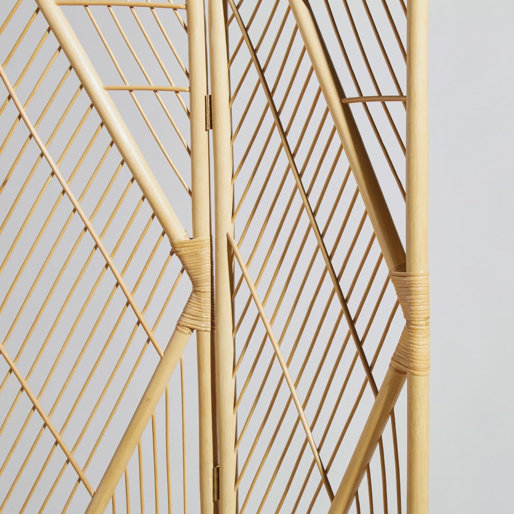 Der LAURA Paravent, eine perfekte Kombination aus Rattan und Bambus, lädt Sie ein, in Ihrem Zuhause zu verweilen und Ruhe zu finden.Schaffen Sie eine schicke und intime Atmosphäre – ideal für eine Leseecke oder als eleganter Raumteiler.Seine natürliche Farbe und die authentischen Materialien verleihen Ihrer Einrichtung einen Hauch von Entspannung und Sanftheit.