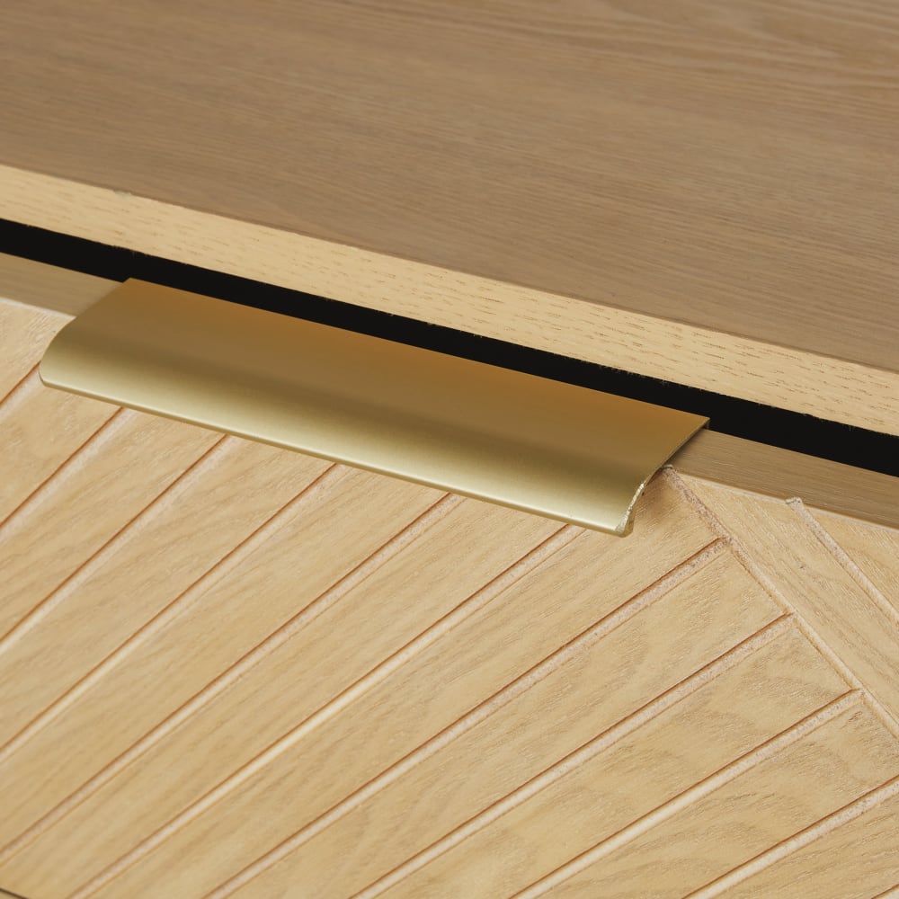 Bringen Sie mit dem Fernsehschrank AXELLE einen charmanten, schicken Retro-Stil in Ihr Wohnzimmer!Uns gefällt das niedrige Design, das den Raum schön auflockert.Ihre Boxen und Konsolen finden ihren Platz in der Schublade mit praktischen Kabeldurchführungen.Die 1 Schublade dieses Fernsehschranks haben eine Klappe aus graviertem Holz mit grafischen Motiven, die durch messingfarbene Metallgriffe abgerundet wird.Dieser Fernsehschrank ist eine Originalkreation der Teams von Maisons du Monde.Stimmen Sie Ihre gesamte Einrichtung auf diesen Vintage-Look ab, indem Sie dieses Möbelstück mit anderen Elementen der Serie AXELLE kombinieren!