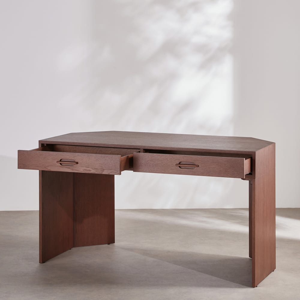 Entdecken Sie Eleganz und Funktionalität mit unserem BOSCO Schreibtisch L140 mit 2 Schubladen – ein Herzstück für Ihren Arbeitsbereich.Dieser Schreibtisch in Eichenoptik verleiht Ihrem Interieur einen Hauch von Raffinesse und Wärme.Seine zwei geräumigen Schubladen bieten diskreten und übersichtlichen Stauraum für all Ihre wichtigen Büromaterialien und Dokumente.Die abgeschrägten Ecken, die an Achtecke erinnern, sind die ideale Wahl für ein inspirierendes und stilvolles Arbeitsumfeld.Dank der optimierten Rückseite lässt sich dieser Schreibtisch auch mitten im Raum platzieren.Der Schreibtisch fügt sich harmonisch in jede Einrichtung ein und lässt sich perfekt mit anderen Möbeln der BOSCO-Serie zu einem stimmigen und eleganten Ensemble kombinieren.