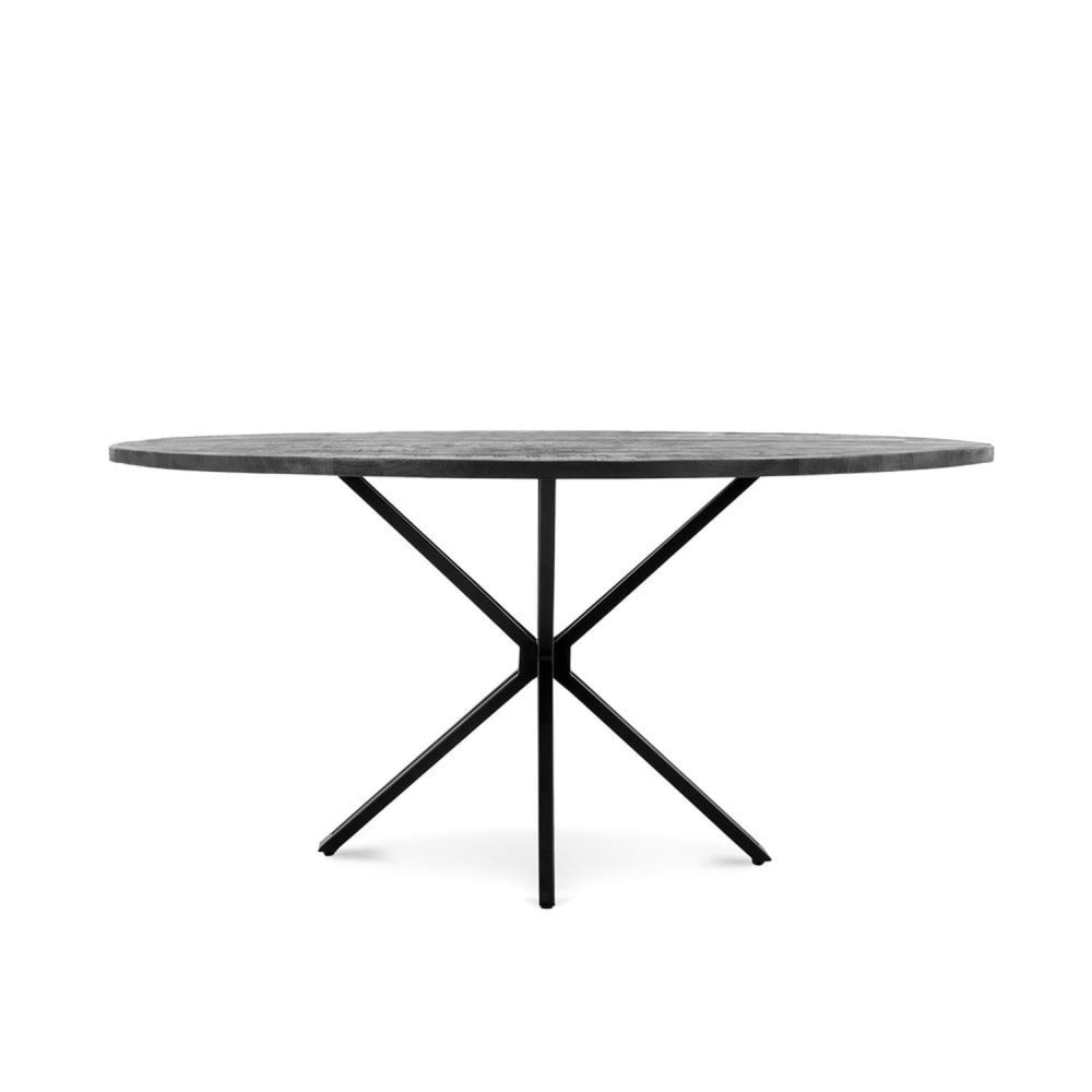 Das Highlight: die markanten Spinnenbeine aus schwarzem pulverbeschichtetem Stahl, die für Stabilität sorgen und dem Tisch einen zeitgemäßen, industriellen Touch verleihen. Durch die runde Form entsteht ein besonders kommunikatives Ambiente, bei dem alle näher zusammenrücken.