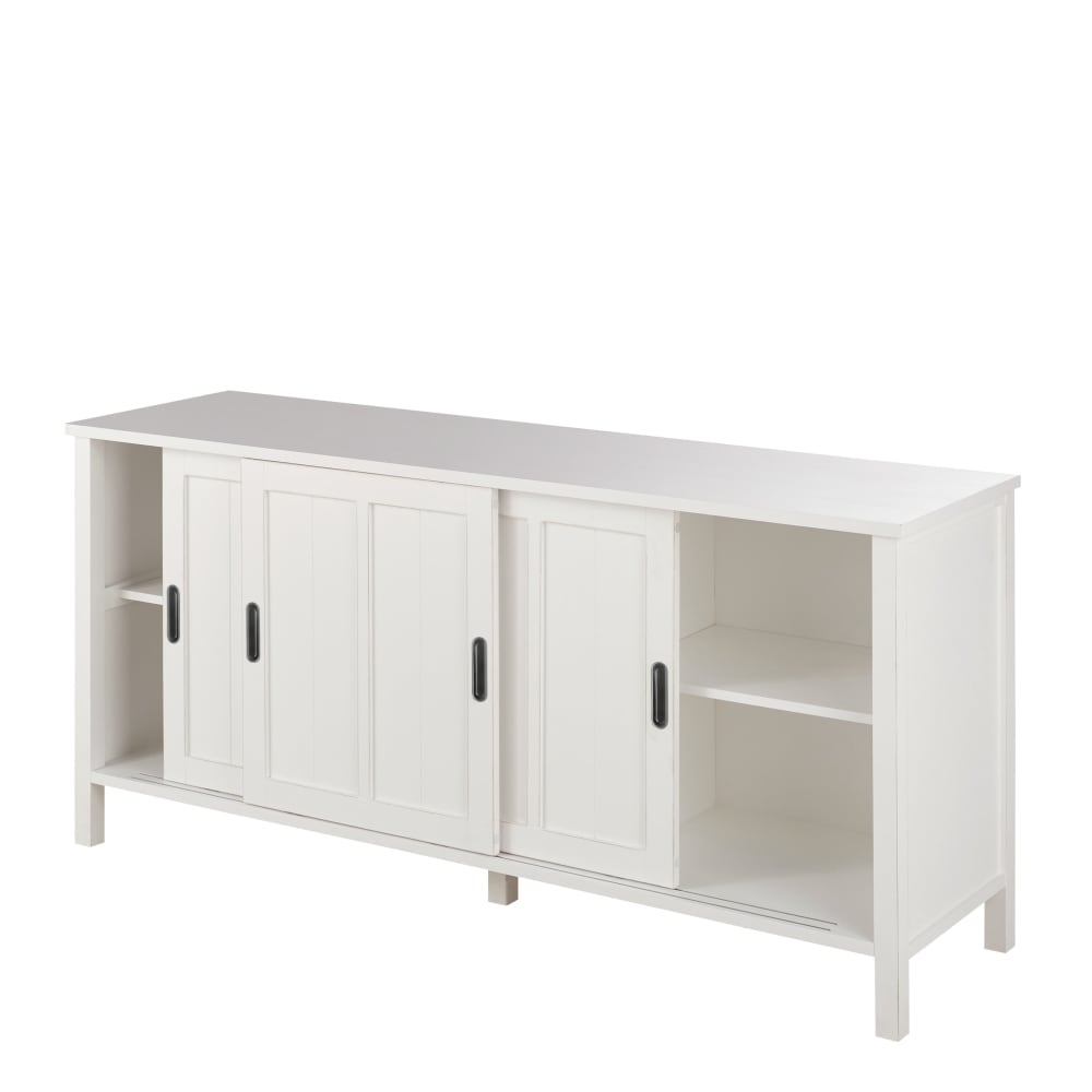Das Buffet mit 3 Schiebetüren, weiß SEASHORE ist ein praktisches und stilvolles Möbelstück für Ihr Esszimmer.Mit seinen drei Schiebetüren bietet es viel Stauraum für Geschirr, Besteck und andere Dinge, die Sie gern ordentlich verstauen möchten.Die weiße Farbe des Buffets passt zu vielen verschiedenen Einrichtungsstilen.Das Buffet SEASHORE ist ein echter Hingucker und wird zum Blickfang in Ihrem Esszimmer.