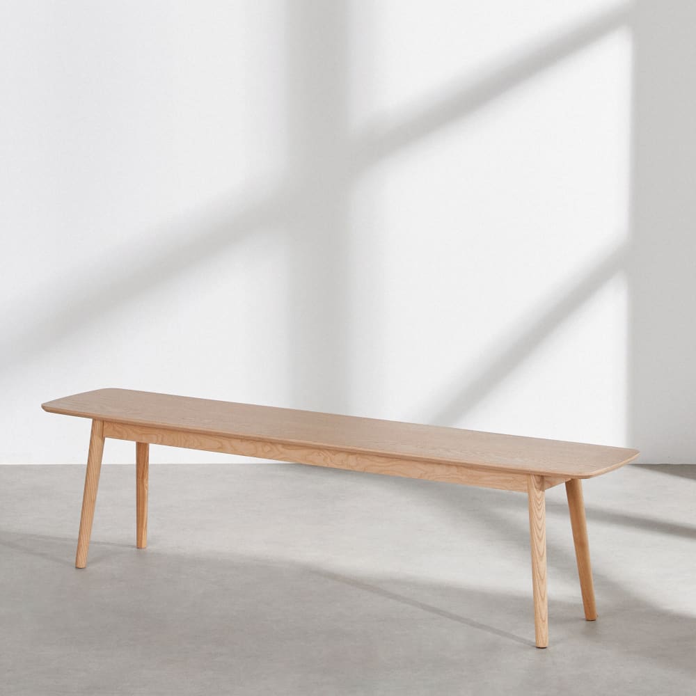 Kombinieren Sie Ihren Esstisch mit der BRONX Bank aus Eichenfurnier und Eschenholz!Sie ist ideal für ein minimalistisches Esszimmer.Sie ist 170 cm lang.Diese Bank lässt sich für ein harmonisches Gesamtbild mit Esstischen aus der gleichen Serie kombinieren.