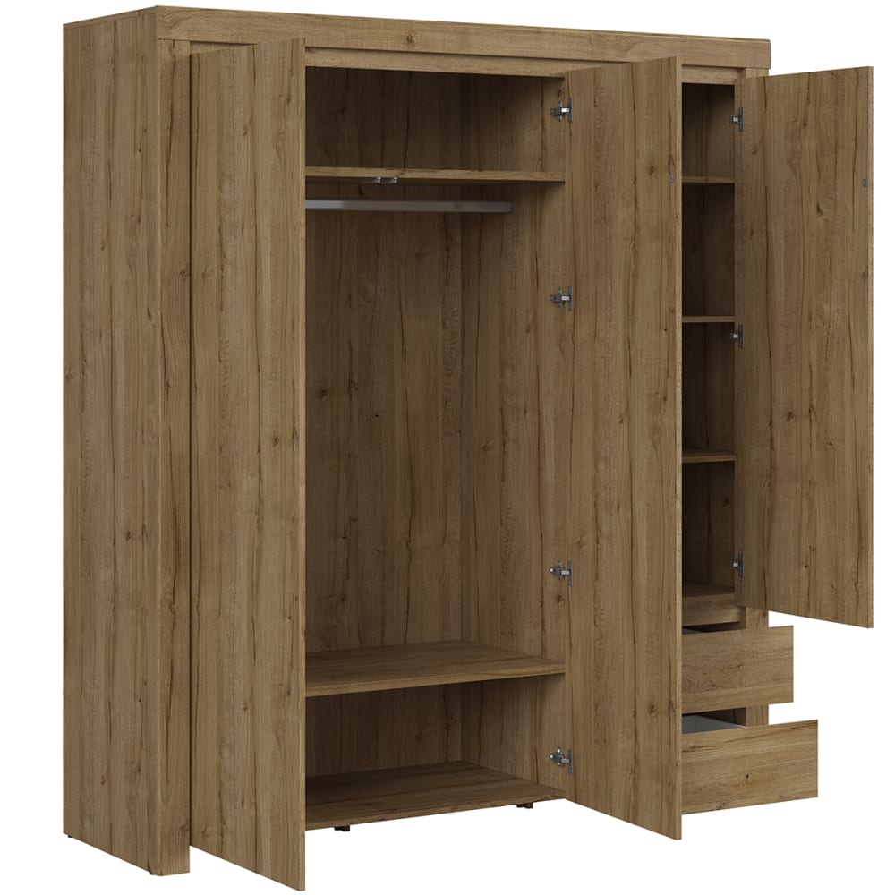 Schrank 3 Türen 2 Schubladen Hella HolzEuropäische Herstellung Kollektion :: Hella Materialien : Spanplatten Farbe : Holz in Waterford-Eichenoptik Eigenschaften: 3 Türen2 Schubladen3 kleine Regale2 große Regale1 Garderobe“Push to open“-ÖffnungssystemGeräuschloses Schließsystem Gewicht und Abmessungen des Produkts : 149 kg181 x 57 x 203 cm Verpackung : Produkt wird zur Montage geliefert, inkl. Anleitung Garantie: 12 Monate Gesamtanzahl der Kartons : 6