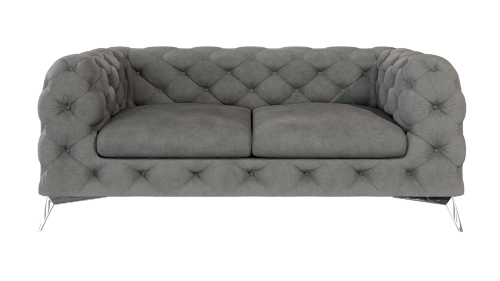 2-Sitzer Chesterfield Sofa aus Samt mit Metall-Füßen, Grau von S-Style
