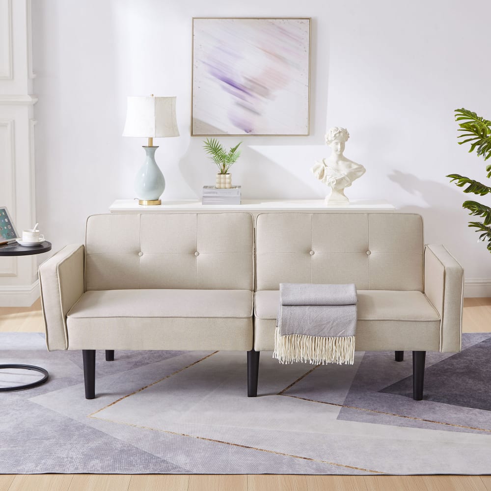 2-Sitzer Sofa aus Baumwoll-Leinenstoff, beige von Flieks