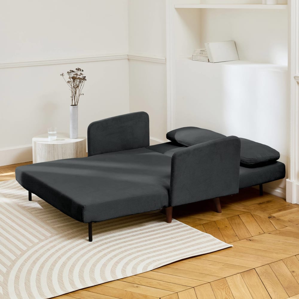 2-Sitzer-Sofa mit Schlaffunktion und dunkelgrauem Cordbezug von sweeek
