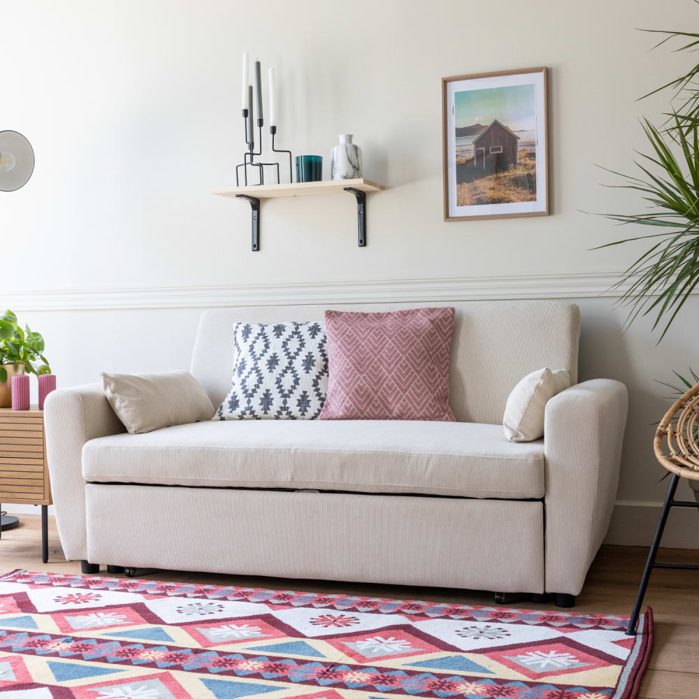 2-Sitzer-Sofabett aus beigem Samt von Happy Garden