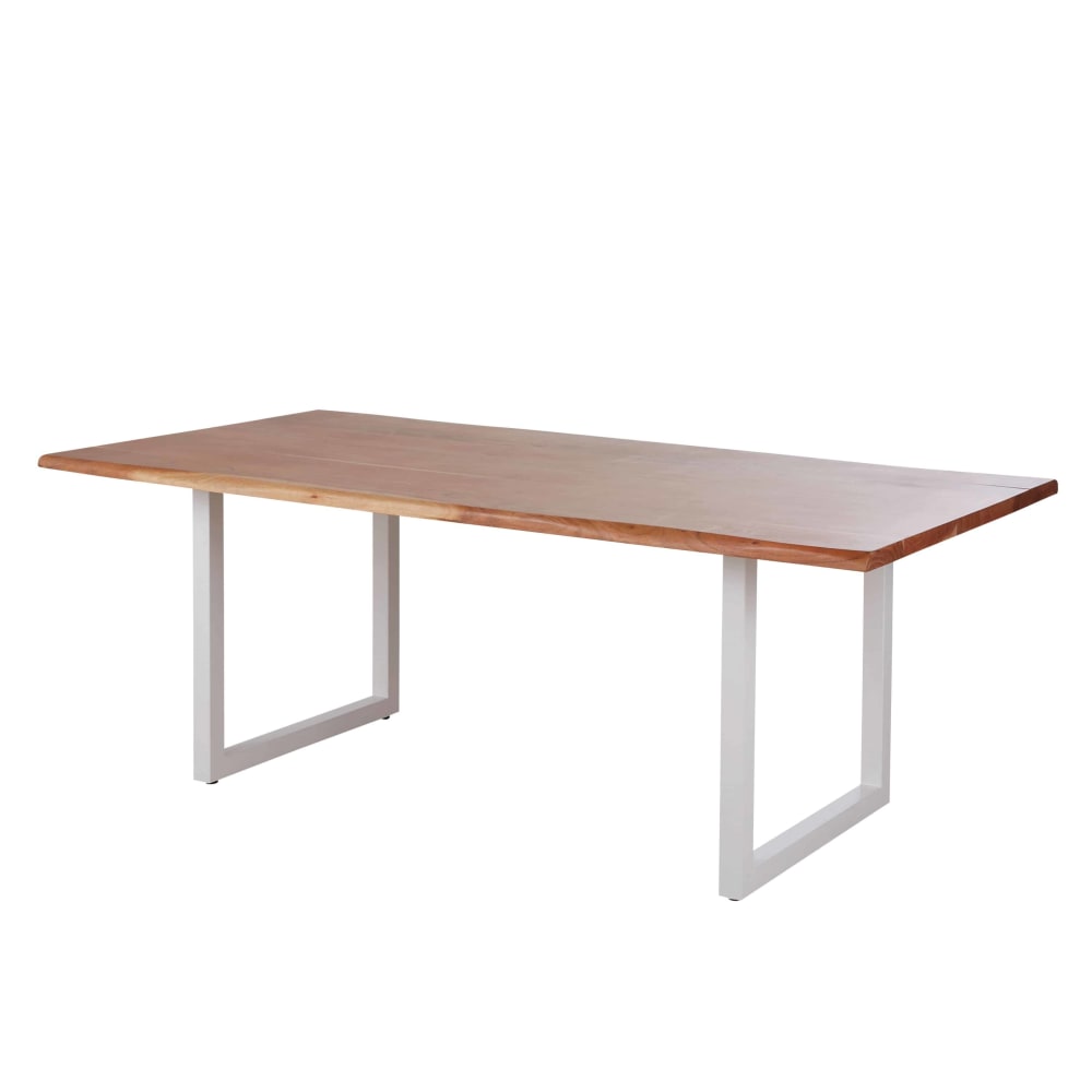 Der Tisch PALISSANDRE lädt Ihre Gäste geradezu dazu ein, Platz zu nehmen!An diesem großen, außergewöhnlichen Tisch haben bis zu 8 oder 10Personen Platz.Wir lieben die naturbelassene Holzplatte.Das Fußgestell aus weißem Metall verleiht ihm einen besonders modernen Look.Wenn Sie Ihre Einrichtung eher im Industrial-Stil gewählt haben, ist dieser Tisch ebenfalls als Variante mit Fußgestell aus schwarzem Metall erhältlich.Würden Sie für diesen Tisch eher die klassischen Holzstühle wählen oder doch eher außergewöhnliche Stühle aus buntem Metall?