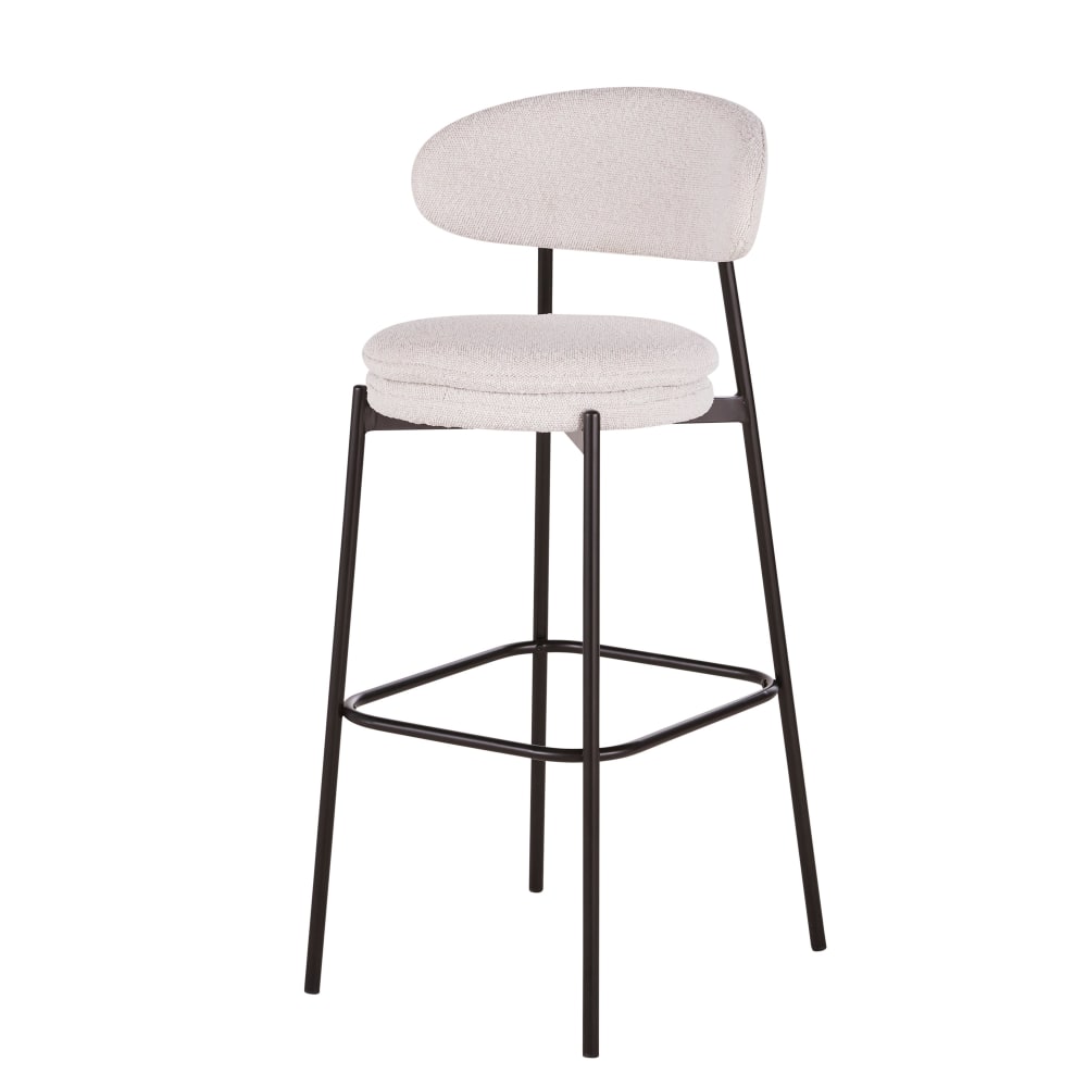 2er Set Barhocker für gewerbliche Nutzung mit schwarzem Stahl und sandfarbenem Bouclé-Stoffbezug von Maisons du Monde