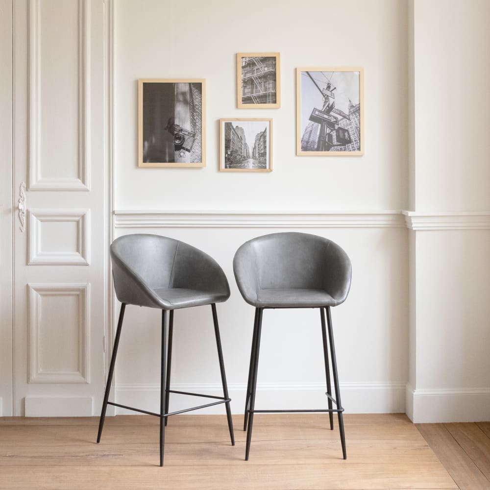 2er Set Barhockern aus dunkelgrauem Kunstleder von Happy Garden