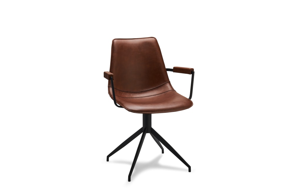 Mit der 360°-Drehfunktion bleibt der Stuhl flexibel einsetzbar ideal für das Esszimmer, den Arbeitsbereich oder als stilvolle Ergänzung für eine Lounge. Das stabile Metallgestell in Schwarz garantiert Langlebigkeit und sicheren Stand. Die gepolsterte Rückenlehne und die ergonomisch geformten Armlehnen bieten optimalen Sitzkomfort.