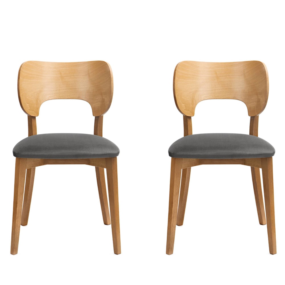 2er Set Esszimmerstühle, Velours-Sitz, Gestell aus Massivholz, Grau von KONSIMO