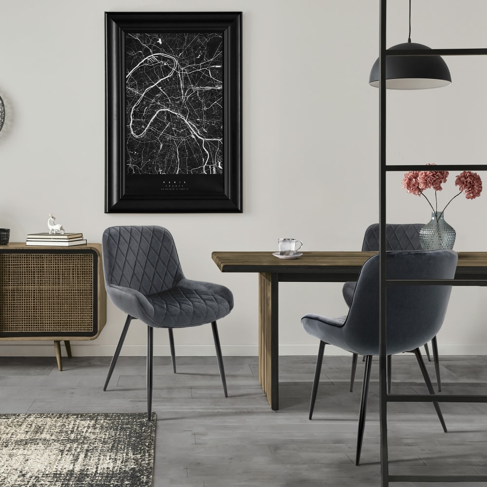 Ihr seid auf der Suche nach stylishen und bequemen Esstischstühlen? Dann haben wir genau das Richtige für euch! Unser 2er Set Esstischstühle in Anthrazit sind der perfekte Hingucker in jedem Esszimmer. Die Sitzhöhe von 49 cm sorgt für eine ergonomische Sitzposition und der Samt Bezug fühlt sich super weich und angenehm an. Die Stühle sind außerdem mit praktischen Kunststoffbodenschonern ausgestattet, die euren Boden vor Kratzern und Beschädigungen schützen. Und das Beste: Unsere Esstischstühle sind nicht nur bequem und praktisch, sondern auch noch besonders stylish! Sie sind mit einer eleganten Rauten Stickerei verziert, die den Stühlen einen edlen und hochwertigen Look verleiht. Die Rauten Stickerei fügt sich perfekt in das Gesamtbild der Stühle ein und setzt einen besonderen Akzent. So werdet ihr garantiert zum Blickfang bei jedem Essen mit Familie und Freunden. Also sichert euch jetzt unser 2er Set Esstischstühle in Schwarz, Grün, Braun, Anthrazit oder Dunkelblau mit der einzigartigen Rauten Stickerei und macht eure Einrichtung zu etwas Besonderem!
