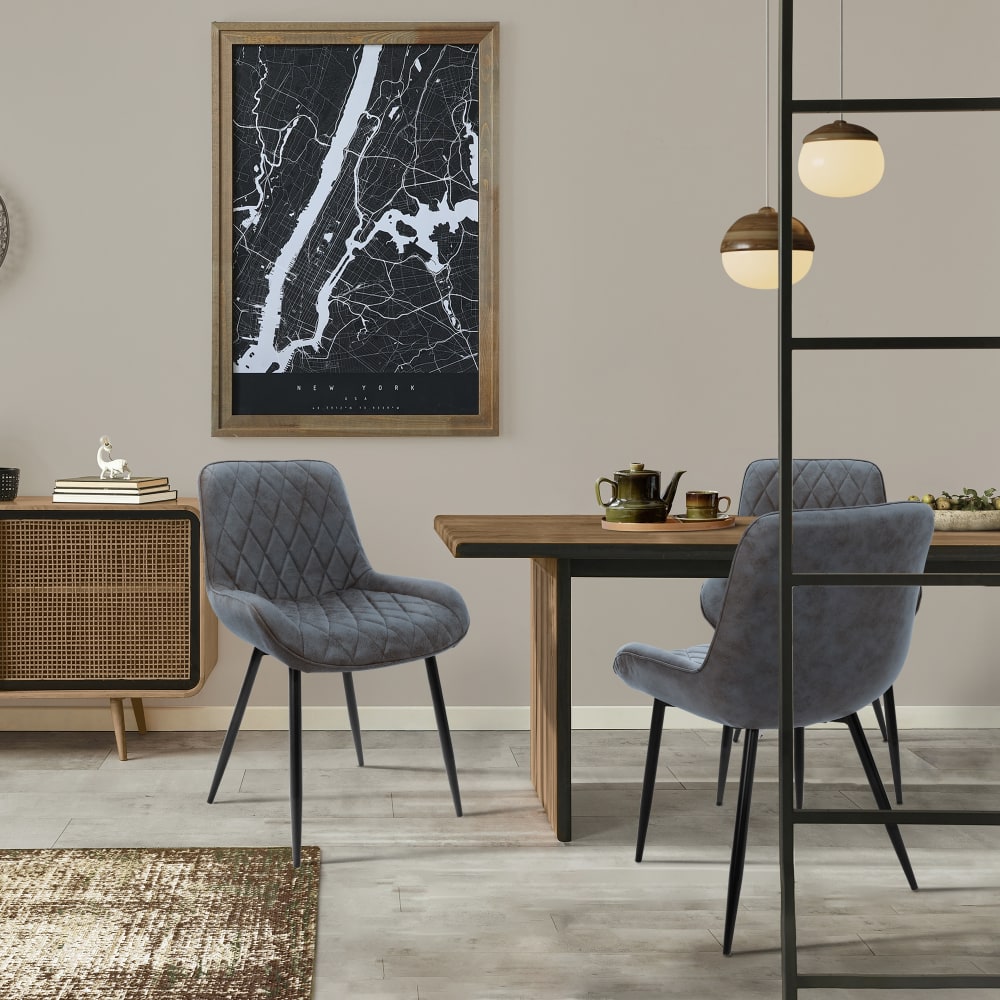 Ihr seid auf der Suche nach stylishen und bequemen Esstischstühlen? Dann haben wir genau das Richtige für euch! Unser 2er Set Esstischstühle in Anthrazit und Schwarz sind der perfekte Hingucker in jedem Esszimmer. Die Sitzhöhe von 49 cm sorgt für eine ergonomische Sitzposition und der PU-Kunstleder fühlt sich super weich und angenehm an. Die Stühle sind außerdem mit praktischen Kunststoffbodenschonern ausgestattet, die euren Boden vor Kratzern und Beschädigungen schützen. Und das Beste: Unsere Esstischstühle sind nicht nur bequem und praktisch, sondern auch noch besonders stylish! Sie sind mit einer eleganten Rauten Stickerei verziert, die den Stühlen einen edlen und hochwertigen Look verleiht. Die Rauten Stickerei fügt sich perfekt in das Gesamtbild der Stühle ein und setzt einen besonderen Akzent. So werdet ihr garantiert zum Blickfang bei jedem Essen mit Familie und Freunden. Also sichert euch jetzt unser 2er Set Esstischstühle in Grün, Schwarz, Braun oder Dunkelblau mit der einzigartigen Rauten Stickerei und macht eure Einrichtung zu etwas Besonderem!
