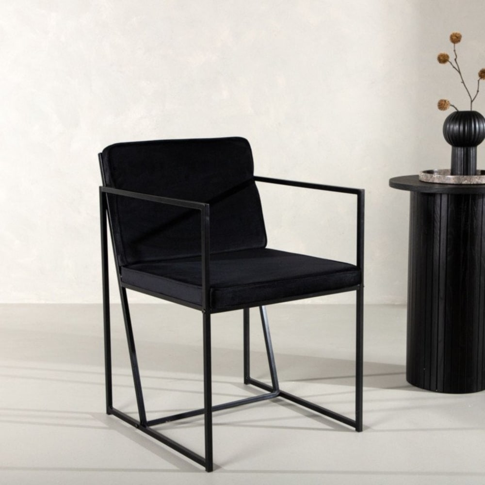 Der Esszimmerstuhl Richmond mit Armlehnen, Veloursschwarz, ist ein Esstischstuhl in der Farbe Schwarz, der sowohl Stil als auch Funktionalität in Ihr Zuhause bringt. Richmond Esszimmerstuhl mit Armlehnen, Veloursschwarz. HINWEIS: Da der Stuhl zu zweit in einem Karton verpackt ist, muss eine gerade Anzahl an Stühlen bestellt werden. Dieses Produkt wurde mit viel Liebe zum Detail hergestellt, was sowohl Ästhetik als auch hohe Haltbarkeit gewährleistet. Bei der Gestaltung wurde sowohl auf Funktionalität als auch auf Stil geachtet, was es zur perfekten Wahl für jeden Raum in Ihrem Zuhause macht. Die verwendeten Materialien sind von hoher Qualität, was dem Produkt eine lange Lebensdauer verleiht und dafür sorgt, dass es dem täglichen Gebrauch standhält. Ob zur Aufbewahrung oder als dekorative Ergänzung, dieses Produkt wertet Ihre Einrichtung auf und bringt zusätzlichen Komfort und Eleganz in Ihr Zuhause.