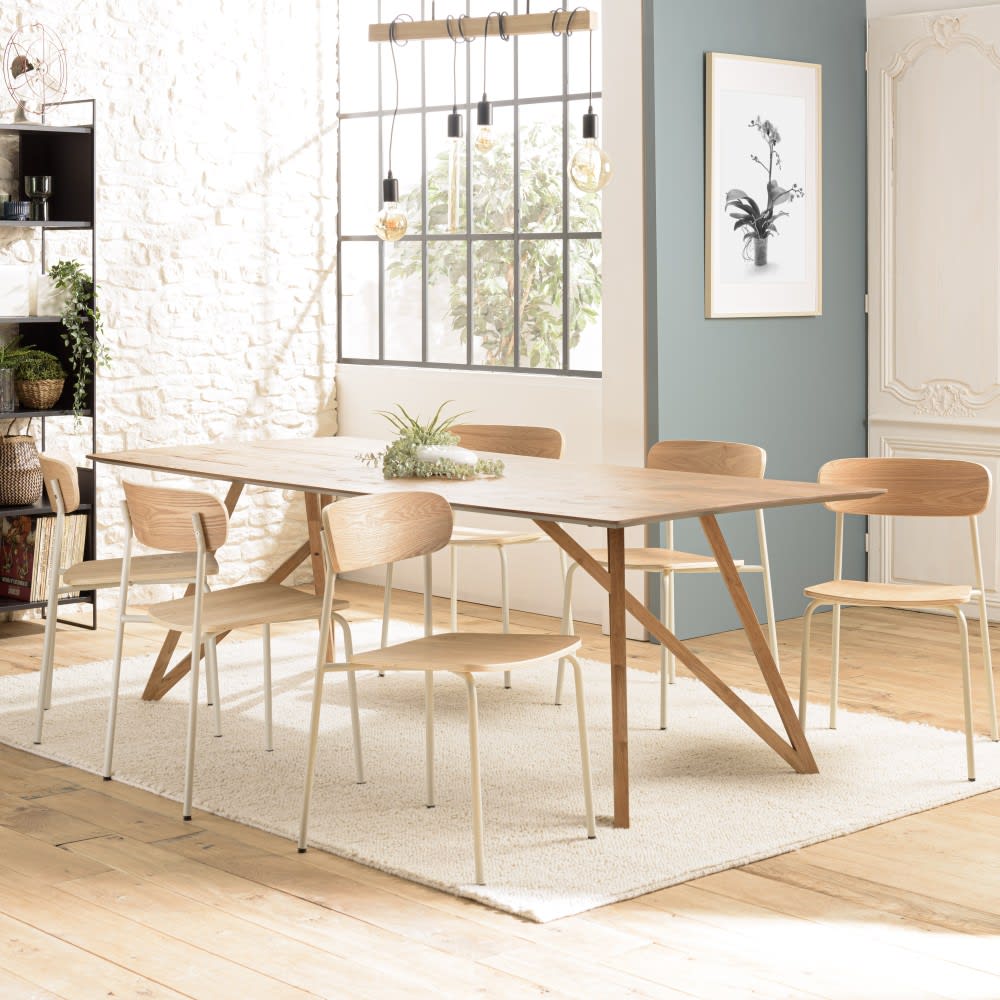 2er Set Schulstühle aus Eschenholz und Beinen aus Stahl, weiß von MACABANE