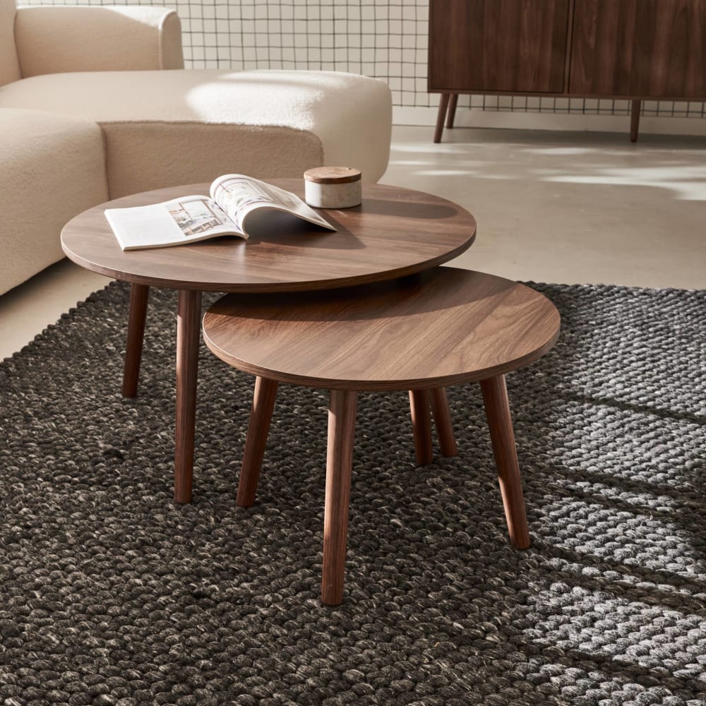 2er-Set von runden Couchtischen, Nussbaumdekor von sweeek