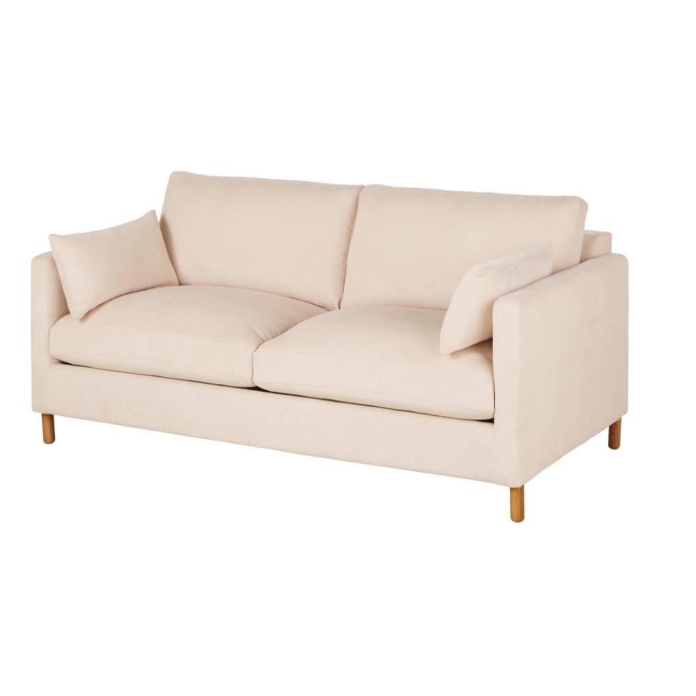 3/4-Sitzer Schlafsofa aus Cord, Matratze 10 cm, beige von Maisons du Monde