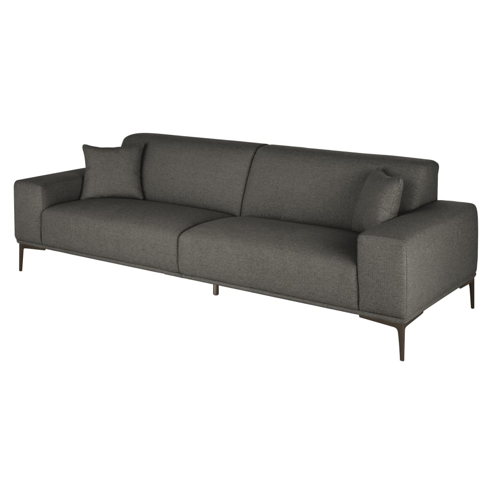Das moderne Design des anthrazitgrauen 3/4-Sitzer-Sofas TOKYO wird Ihrem Wohnzimmer Stil verleihen!Sein meliertes, intensives Anthrazitgrau ist sehr elegant.Seine anthrazitgrauen Metallfüße verleihen ihm den letzten Schliff an Modernität.Dieses weich gepolsterte große Sofa ist sehr bequem.Seine 2 dazu passenden Kissen sorgen für noch mehr Komfort. Wie wäre es, wenn Sie sie mit weiteren Kissen anderer Farben kombinieren?Für kleinere Räume gibt es dieses Sofa auch als 2/3-Sitzer-Ausführung und für gesellige Familienwohnzimmer als großes Ecksofa!Dieses Sofa ist sehr groß. Stellen Sie sicher, dass das Produkt durch Ihre Eingangstür passt (Abmessungen des Pakets: 255x100x68 cm)