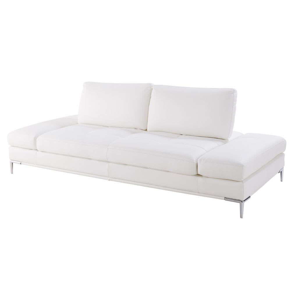 Erleben Sie modernen Komfort mit dem 3/4-Sitzer Sofa GELLER mit weißem Textil mit Beschichtung. Sein Design wird Sie begeistern, es fügt sich harmonisch ein in ein modern gestaltetes Wohnzimmer. Ein wunderschönes Sofa, das Ihnen mit seinen Kopfstützen und den verstellbaren Armlehnen Ihre Ruhepausen versüßt. Der Suedine-Bezug macht das Sofa pflegeleicht. Die schlichte Farbe harmoniert mit allen Decken- und Kissenfarben. Jetzt können Sie Ihre gemütlichen Pausen rundum genießen!Dieses Sofa ist sehr groß. Stellen Sie sicher, dass das Produkt durch Ihre Eingangstür passt (Abmessungen des Pakets: 239x115x76 cm)