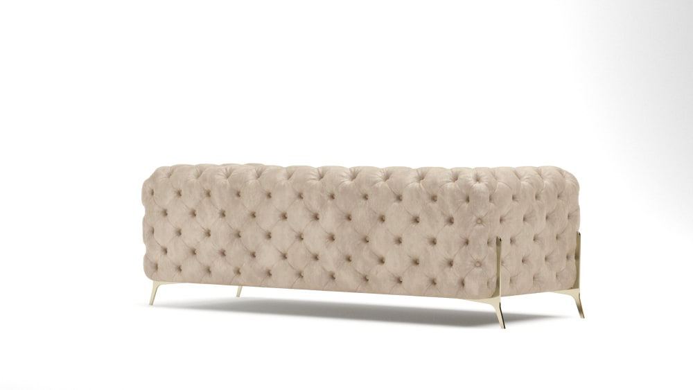 3-Sitzer Chesterfield Sofa aus Samt-Bezug, Beige von S-Style