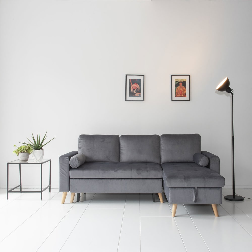 3-Sitzer-Ecksofa, umwandelbar, aus grauem Samt von Happy Garden