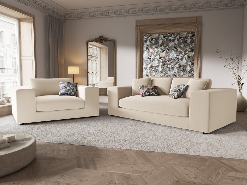 3-Sitzer Sofa aus Samt, beige von CXL by Christian Lacroix