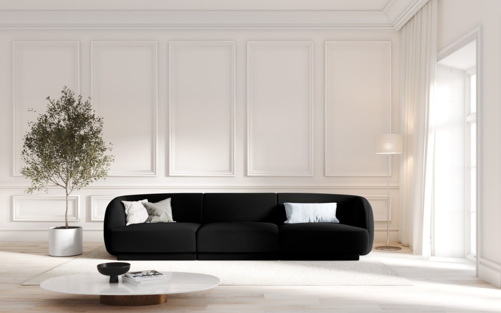 3-Sitzer Sofa aus Samt, schwarz von Micadoni Home