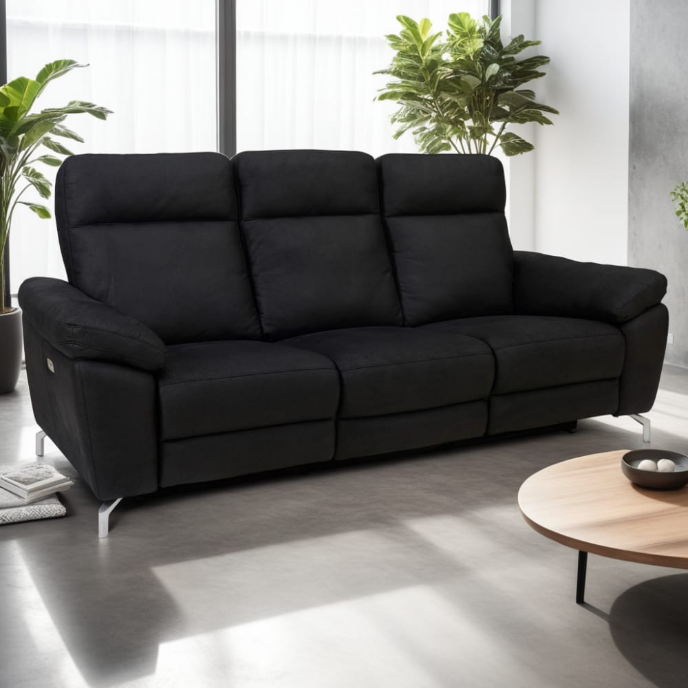 Das Selesta 3-Sitzer Sofa in Schwarz ist die perfekte Kombination aus Luxus, Funktionalität und modernem Design. Mit seiner elektrisch verstellbaren Rückenlehne und Fußstütze können Sie sich per Knopfdruck in eine bequeme Liegeposition bringen – ideal zum Entspannen nach einem langen Tag.