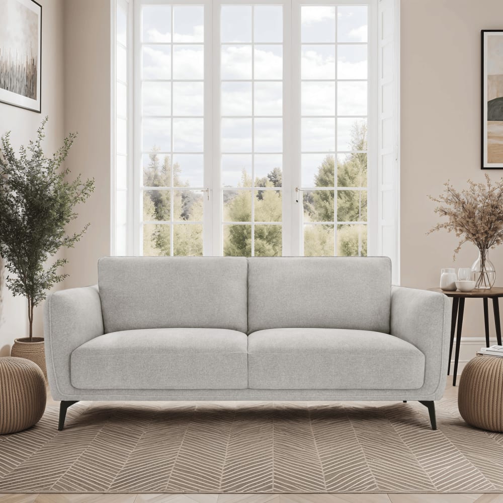 Das Selena 3-Sitzer Sofa in Grau kombiniert moderne Ästhetik mit hohem Sitzkomfort. Der elegante graue Stoffbezug verleiht Ihrem Wohnzimmer eine stilvolle Note, während die großzügige Sitzfläche mit einer Breite von 165 cm perfekt für gemeinsame Momente mit Familie oder Freunden ist.