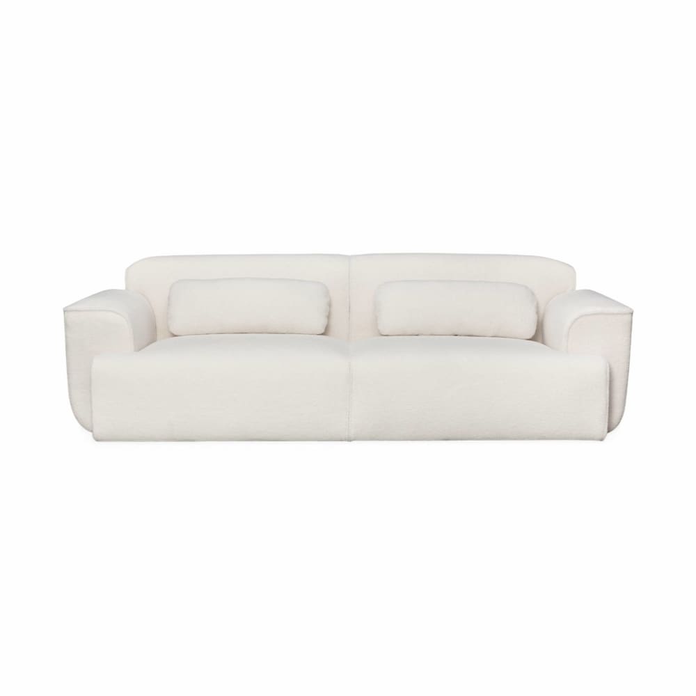 Unsere Möbelkollektion Wallas sorgt für eine bezaubernde und elegante Einrichtung. Das schicke, moderne und minimalistische Design wird all Ihre Erwartungen erfüllen. Dank der tiefen Sitzfläche sind Komfort und Entspannung vorprogrammiert! Sein robustes und solides Gestell aus Pappelholz bietet Stabilität und Beständigkeit. Diese Kollektion ist in verschiedenen Farben und Stoffen erhältlich.Ein modernes und minimalistisches SofaDieses Sofa passt dank seines cremefarbenem Bouclé-Bezugs und seines schicken und eleganten Designs perfekt zu jeder Einrichtung im klassischen Stil. Seine tiefe Sitzfläche bietet Platz für bis zu drei Personen und eignet sich hervorragend für entspannende Momente am Wochenende oder nach langen Arbeitstagen. Die Couch wird mit zwei kleinen rechteckigen Kissen mit abnehmbarem Bezug geliefert. Sie brauchen nur mehr noch eine warme Decke! Und das Beste daran ist, dass lediglich die Couchbeine montiert werden müssen und Sie keinen zusätlichen Montageaufwand haben. Gestalten Sie ein schlichtes und gemütliches Wohnzimmer mit diesem weichen Sofa mit klaren Linien. Sofa: L 230 x T 98 x H 73cm (52,3kg)Sitzfläche: L 172 x T 66cmSitzhöhe: 35cmRückenlehne: L 172 x H 39cmMaße der Kissen: L 71 x H 31cm (x2)Breite der Armlehne: 29cmHöhe der Armlehne: 57cmMax. Belastung: 110kg pro SitzplatzPolsterung Sitzfläche: Recycelter Polyurethanschaum (Dichte: 28 kg/m³) + Wellenfedern und elastische GurtePolsterung Rückenlehne und Kissen: Polyurethanschaum (Dichte: 28kg/m³ und 25kg/m³) Kissen: 100% Polyester