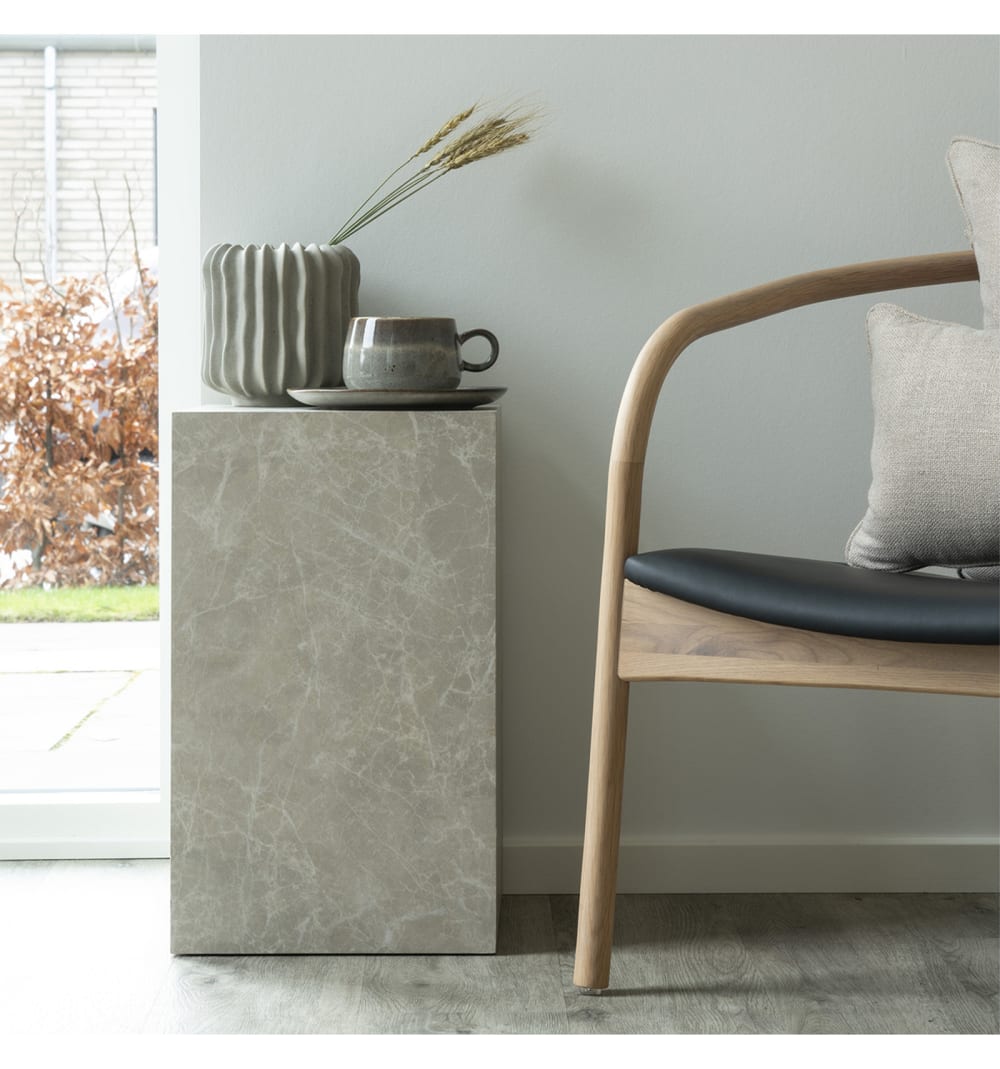 VAST Kollektion: Couchtisch in beiger MarmoroptikGrosser, eleganter quadratischer Tisch. Tischplatte in Marmoroptik und schlichtes Gestell in modernem Design. Die perfekte Kombination aus Material und Linienführung für ein stilvolles Interieur.Masse: B 30 x T 30 x H 50 cm