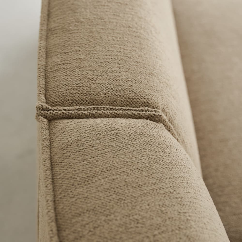 Das modulare 4-Sitzer-Sofa Dario ist ideal für alle, die Abwechslung, Komfort und Eleganz lieben. Bestehend aus drei tiefen Modulsesseln, einer davon mit großem Winkel, und einem Sitzhocker, bietet es eine außergewöhnliche Vielseitigkeit. Sein schlichtes und raffiniertes Design passt zu jedem Einrichtungsstil. Aus pflegeleichtem, camelfarbenem Polyestergewebe mit OEKO-TEX®-Zertifikat. Die großzügige Polsterung und ergonomisch geformte Rückenlehne sorgen für unvergleichlichen Komfort. Der tiefe Modulsessel mit großem Winkel optimiert den Sitzbereich und schafft eine gemütliche und funktionale Sitzecke. Der Sitzhocker sorgt für mehr Flexibilität und kann als zusätzliche Sitzgelegenheit oder kombiniert als Liegesofa dienen. Das modulare und individuell gestaltbare Sofa Dario passt sich Ihren Bedürfnissen und Wünschen an.
