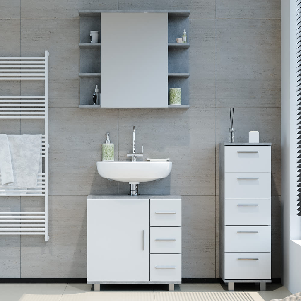 3er Set, Badmöbel-Set mit Midischrank Beton von Vicco