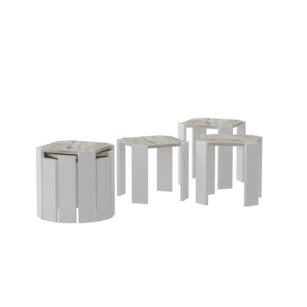 3er-Set Beistelltische, weißer Marmor, 45 x 45 x 41 cm von Decorotika