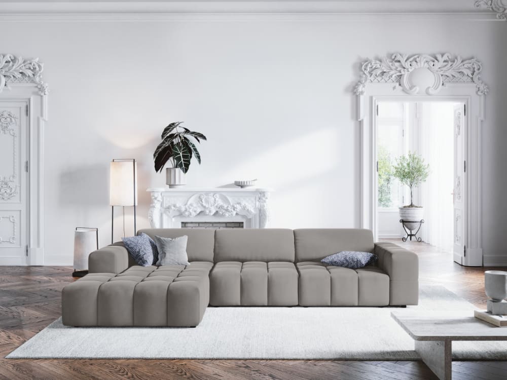 4-Sitzer Ecksofa links aus Samt, hellgrau von CXL by Christian Lacroix