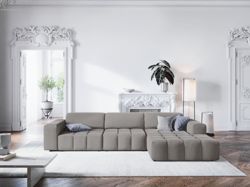 4-Sitzer Ecksofa rechts aus Samt, hellgrau von CXL by Christian Lacroix