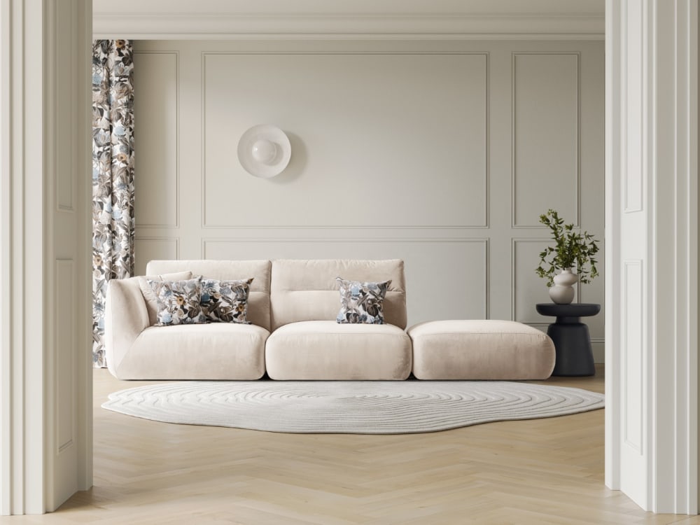 4-Sitzer modulares Sofa rechts aus Samt elfenbein von CXL by Christian Lacroix