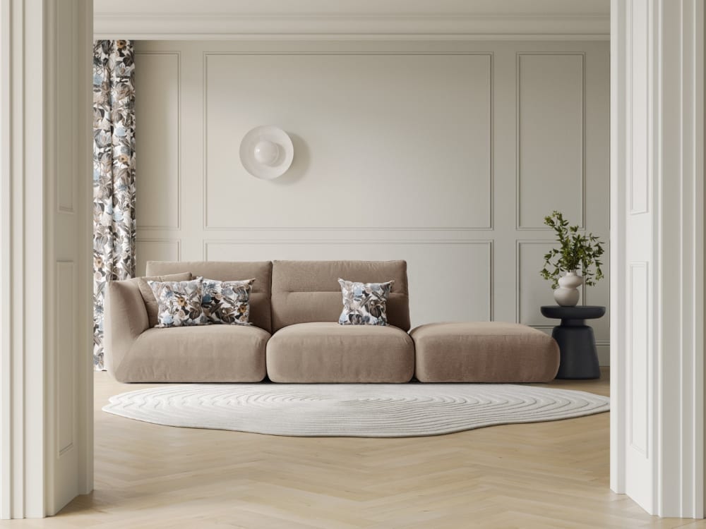 4-Sitzer modulares Sofa rechts aus strukturiertem Stoff sandfarben von CXL by Christian Lacroix
