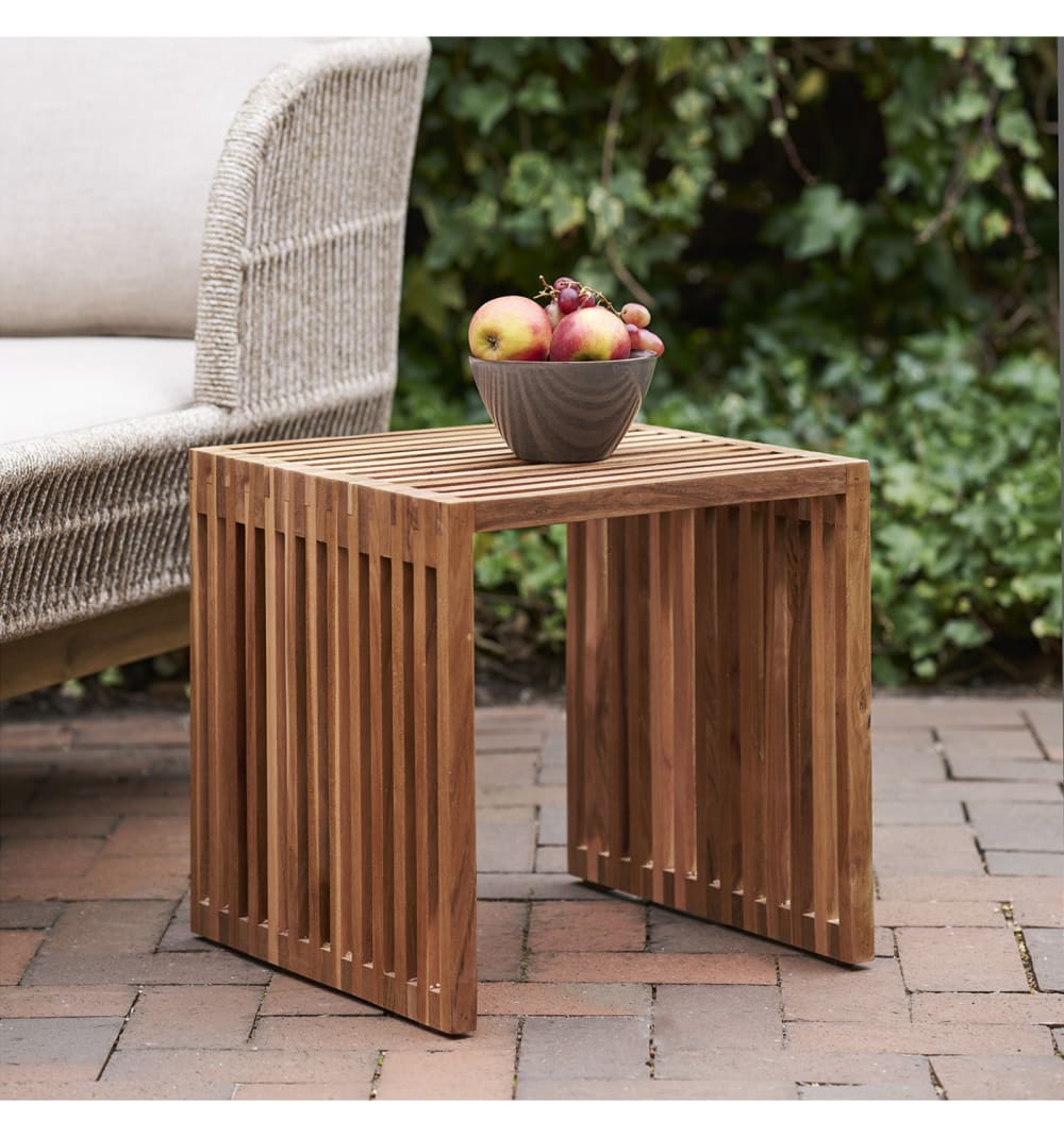 PLUM Kollektion: Beistelltisch aus recyceltem MassivteakholzEin Hauch Natur. Dieser Beistelltisch aus recyceltem Massivteakholz ist ein robustes Möbelstück mit schlichtem Design. Ideal als Couchtisch oder Pflanzenständer. Die perfekte Kombination aus Material und Form für einen authentischen Stil.Masse: B 40 x T 40 x H 40 cm
