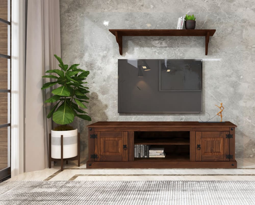 Moderner Landhausstil mit einem Hauch von Exotik: Dieses TV-Möbel ist ein ebenso vielseitiges wie hochwertiges Möbelstück. Die Kombination aus dem FSC®-zertifizierten Massivholz und den Designelementen wie Metallscharnieren und -griffen führt zu einem gelungenen Gesamtbild im Stil eines modernen Landhausstils. Gleichzeitig bietet dieses Medienmöbel mit seinen Fächern mit Türen, den offenen Fächern und der gro?en Ablagefläche viel Stauraum für Ihr Multimedia-Equipment zu Hause.