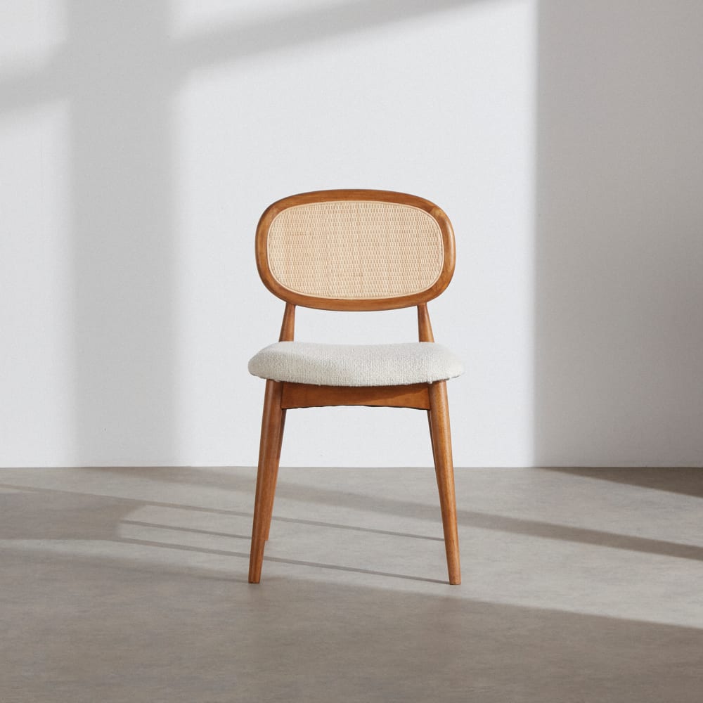 Verlieben Sie sich in den Stuhl FIFTY aus dunklem Gummibaumholz – eine gelungene Mischung aus Vintage-Stil und modernen Linien. Das Rattan-Geflecht der Rückenlehne verleiht Ihrem Interieur einen Hauch von Authentizität. Die großzügige Polsterung des Sitzes sorgt für optimalen Komfort. Dieser Stuhl wurde von den Designern von Maisons du Monde entworfen. Er ist auch als Kücheninselstuhl in der gleichen Farbe erhältlich.