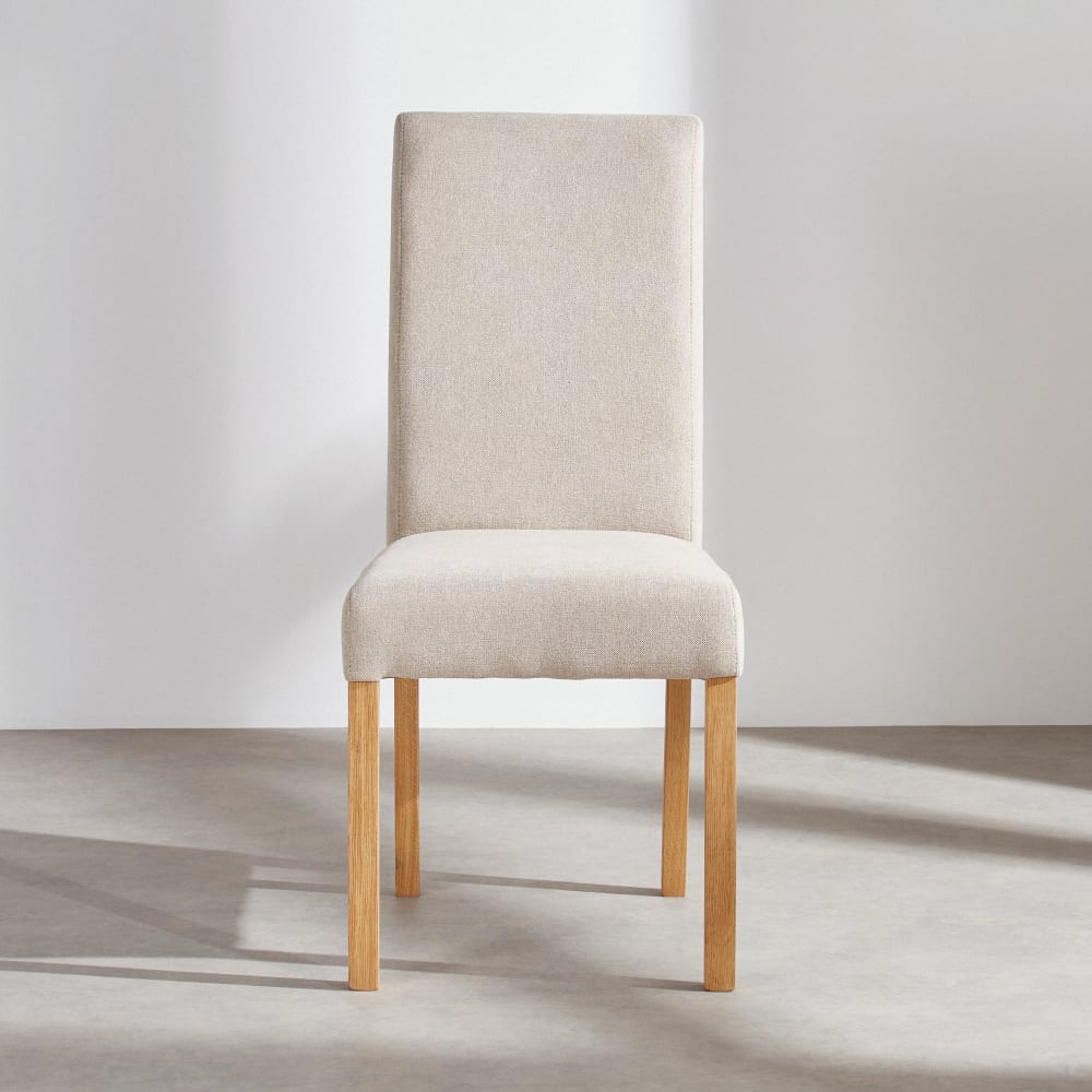 Mit dem BABETH Stuhl werden Ihre Mahlzeiten komfortabel und stilvoll! Sein zeitloses Design fügt sich harmonisch in jede Einrichtung ein. Der beigefarbene Bezug wirkt sanft und zeitlos. Die Beine dieses Stuhls sind aus Eichenholz gefertigt und verleihen ihm einen Hauch von Authentizität und Stabilität. Die Polyurethan-Füllung sorgt für optimalen Komfort auch bei langen Mahlzeiten.