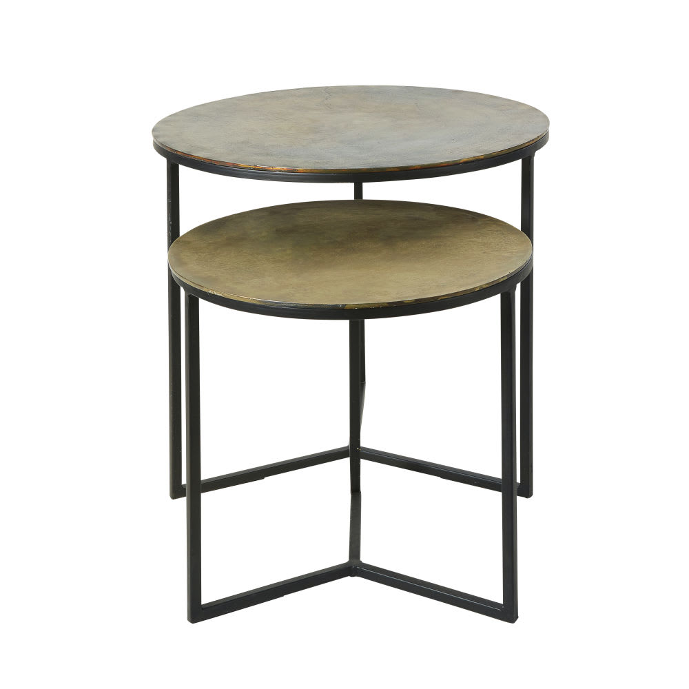 Spielen Sie mit den 2 Beistelltischen LHASSA aus schwarzem und goldfarbenem Metall mit unterschiedlichen Höhen in Ihrer Deko. Ihre geraden Linien ergeben kombiniert mit den runden Platten ein harmonisches, modernes Gesamtbild. Dank ihrer Schlichtheit passen sie zu jedem Einrichtungsstil. In einem modernen Wohnzimmer mit Akzenten in grafischem Schwarz, einem eher im Neo-Vintage-Stil mit sich überkreuzenden geometrischen Formen gehaltenen Raum oder gar in einem exotisch-schicken Ambiente mit goldenen Farbtupfern. Sie finden bestimmt einen besonderen Platz in Ihrer Einrichtung.