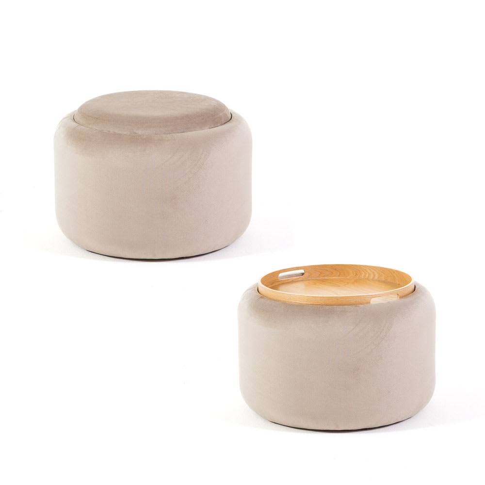 Der Aufbewahrungspouf Nala ist die perfekte Lösung für alle, die eine elegante, multifunktionale und platzsparende Einrichtungsergänzung suchen. Mit einem Durchmesser von 49 cm und einer Höhe von 38 cm bietet Nala einen großzügigen inneren Aufbewahrungsraum. Die wahre Besonderheit ist der Holzdeckel, der umgedreht und als praktisches Tablett oder Beistelltisch verwendet werden kann.