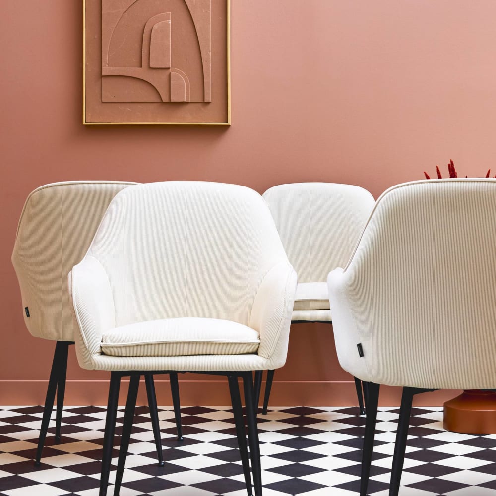 4er-Set antikweiße Samt-Sessel mit Metalbeinen von sweeek