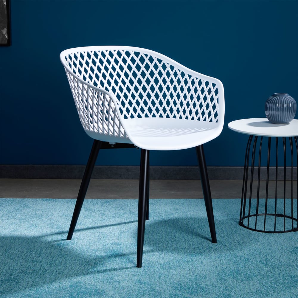 im Retro Stil besticht durch das Netzdesign der Sitzschale und die konisch geformten Füße. Diese Stühle mit den Armlehnen bieten Ihnen einen angenehmen Sitzkomfort. Der Stuhl mit seiner strapazierfähigen Kunststoffschale in neutralen Farben lässt sich gut in Ihre Küche oder Essbereich integrieren und kann auch einfach mit einem feuchten Tuch gereinigt werden.