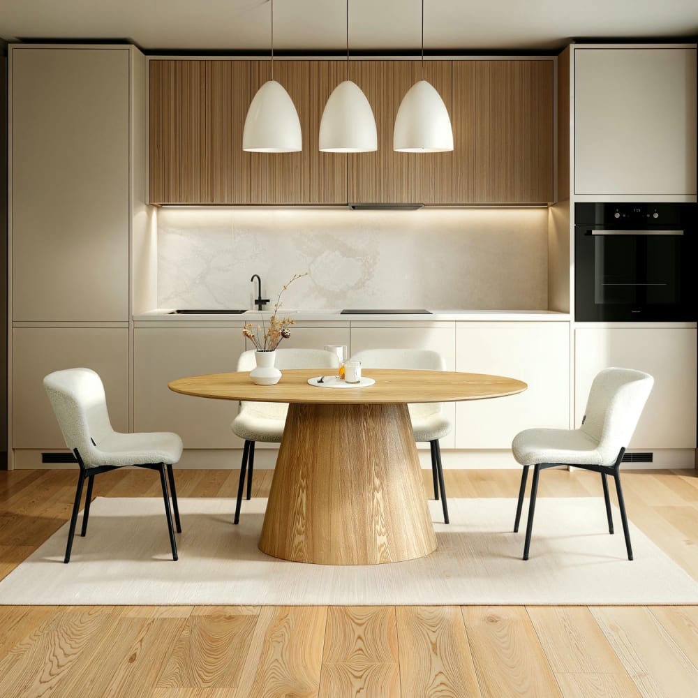 Das 2er-Set Teddy Esszimmerstühle in Weiß verbindet modernes skandinavisches Design mit einem luxuriösen Bouclé-Stoff, der eine besonders weiche Haptik bietet. Die ergonomische Sitzform mit gepolsterter Sitzfläche sorgt für maximalen Komfort perfekt für lange Dinnerabende oder entspannte Stunden im Wohnbereich.